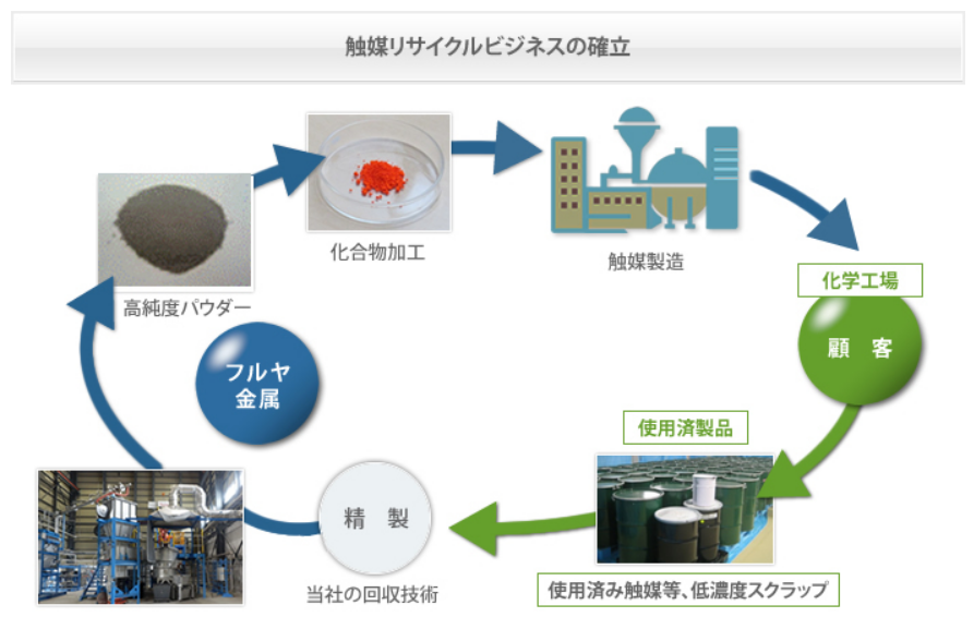 The chemical catalyst production plant has been inaugurated on March 10, 2014 at our Tsuchiura Plant site, with investment value of approx. 600 million yen. By this investment, it has become ready for Furuya to be entrusted with production of processing chemical catalyst for chemical plants by domestic chemical producers. Trial catalyst production will soon be commenced, while commercial production under the entrusted contract with chemical producers will be started during the 2015 fiscal year. Based on the completion of this facility as well as the dry melting furnace introduced in August 2013 for recovery of lower grade precious metal scraps, the complete production and recycling system has established in house, namely "from the production of high grade precious metal powder, chemical compounds, chemical catalyst, delivery to entrusted producers, and through to recovery and refining of spent chemical catalyst". It is proudly said that the recycling model of chemical process catalyst has been established.