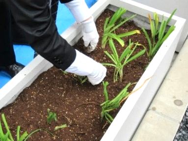 On December 15, 2023, we planted 30 stumps of orange daylily for the first time at our employee dormitory in Tsuchiura City, Ibaraki Prefecture. They were the stumps received from the Koajiro Outdoor Activity Coordination Council, and we will cultivate them going forward. The increased strains will be replanted in their original habitat, the Koajiro Forest (Miura City, Kanagawa Prefecture) through them.